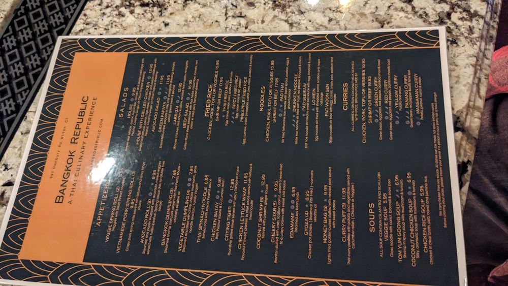 Welcome to Bangkok Republic, a hidden gem in Wilton, CT, offering a vibrant selection of authentic Thai cuisine. This cozy and inviting eatery is perfect for both casual dinners and family gatherings. The menu features an impressive array of dishes, including flavorful curries like the Green Curry and Massaman Curry, each crafted with the freshest ingredients and aromatic spices that showcase the culinary heritage of Thailand.